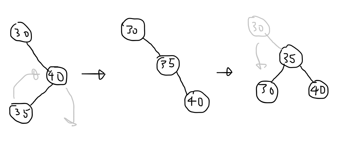 - RL(Right-Left) : 회전 2회, LL 회전 후 RR 회전