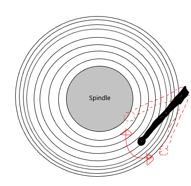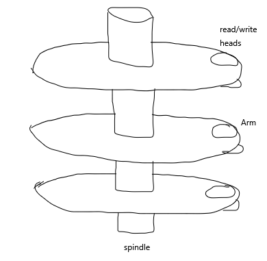 - 팔은 빠르게 이동하면서 읽기/쓰기 헤드를 모든 트랙 위에 놓을 수 있다.