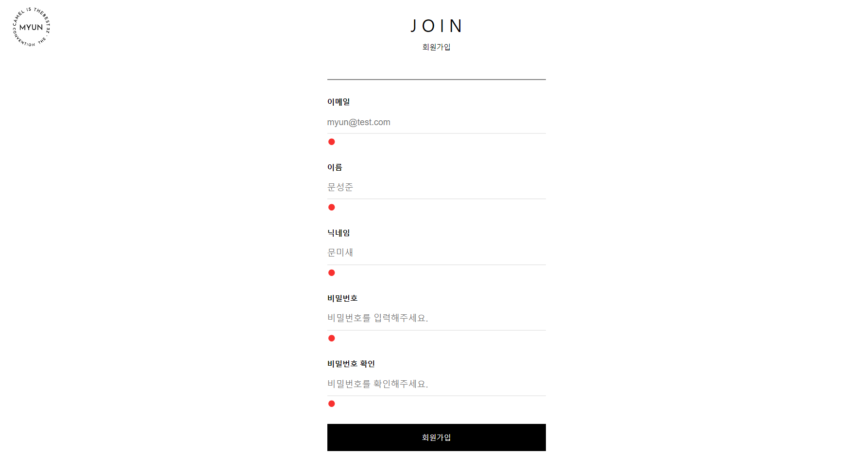 그리고 기본적인 유효성 검사를 집어넣어서 올바르게 입력하지 않으면 🔴을 올바르게 입력했으면 🟢을 띄워주게 했다.