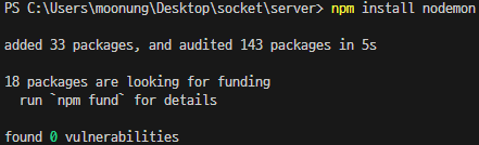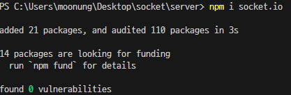설치가 끝나면 메인 라이브러리인 socket.io를 설치한다.
