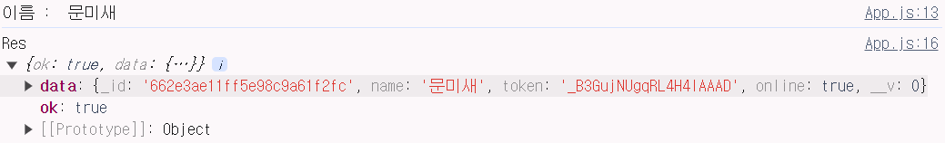 기존의 app.js 코드에서 유저 정보를 담을 변수를 useState로 만들고 그 값에 응답 값이 true면 저장한다.