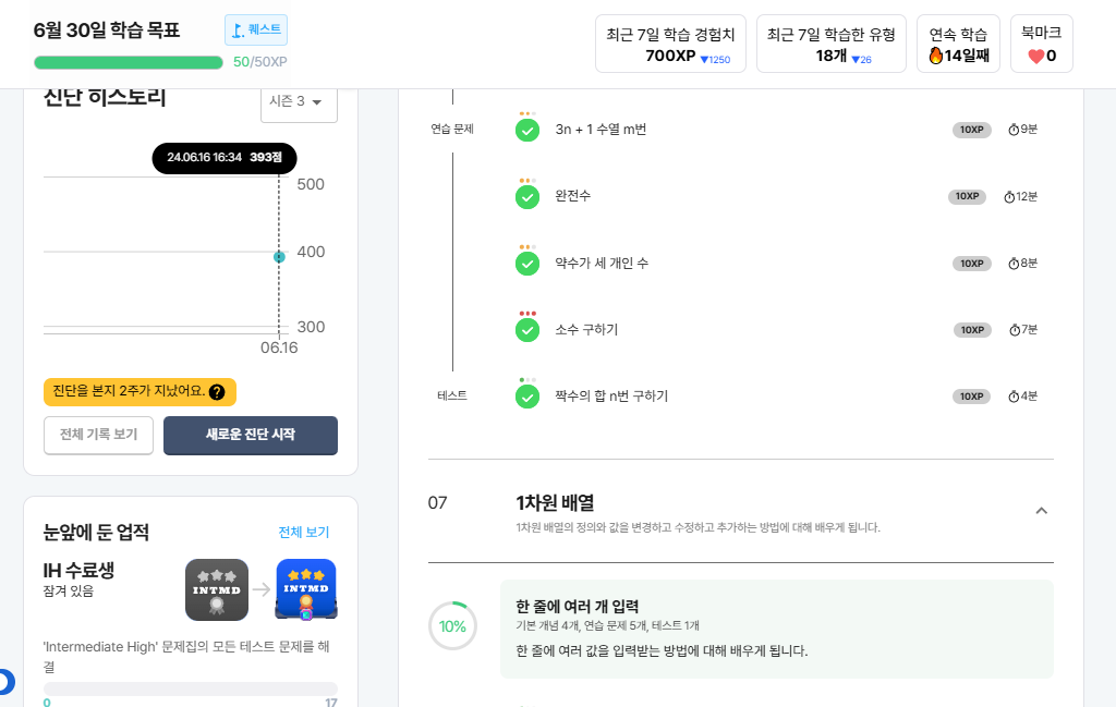 | 24.07.01 day15 코드트리 문제 풀기, 프로그래머스 문제 풀기, 시맨틱 마크업 (0) | 2024.07.01 |