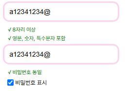 √ 비밀번호 동일