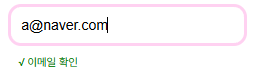이메일은 기존에는 회색으로 비활성화 되어있다가 올바르게 입력했을 시 초록색으로 활성화가 된다.