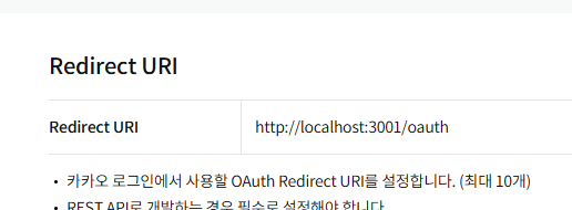 플랫폼을 지정했으면 redirect uri도 작성해줘야 해서 lcoalhost에 oauth를 붙여 작성해줬다.