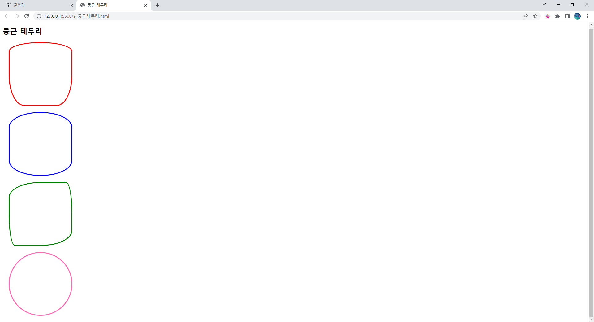기본 태그는 border-radius로 사용하고 각 테두리를 주는 방법이 다릅니다.
