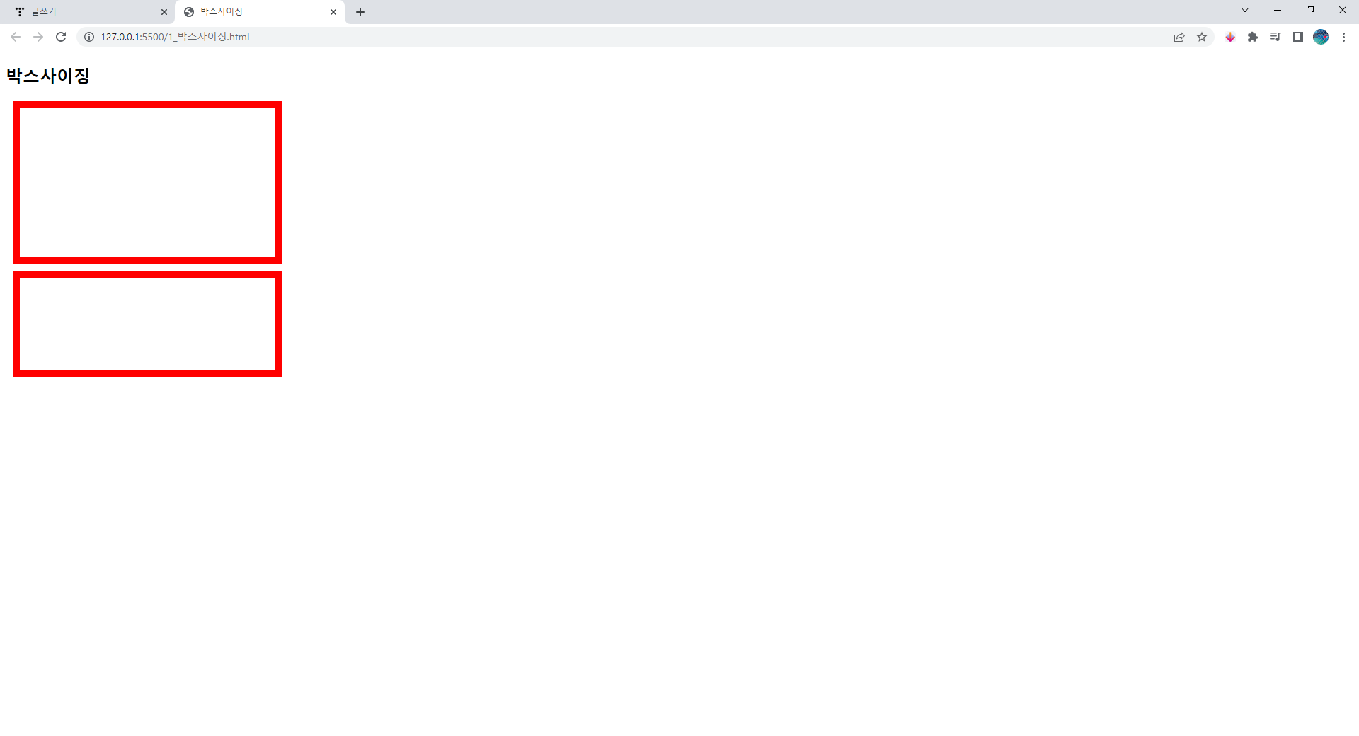 여기에 1번 박스는 길이와 높이를 포함하지않는 content-box로 설정하였고