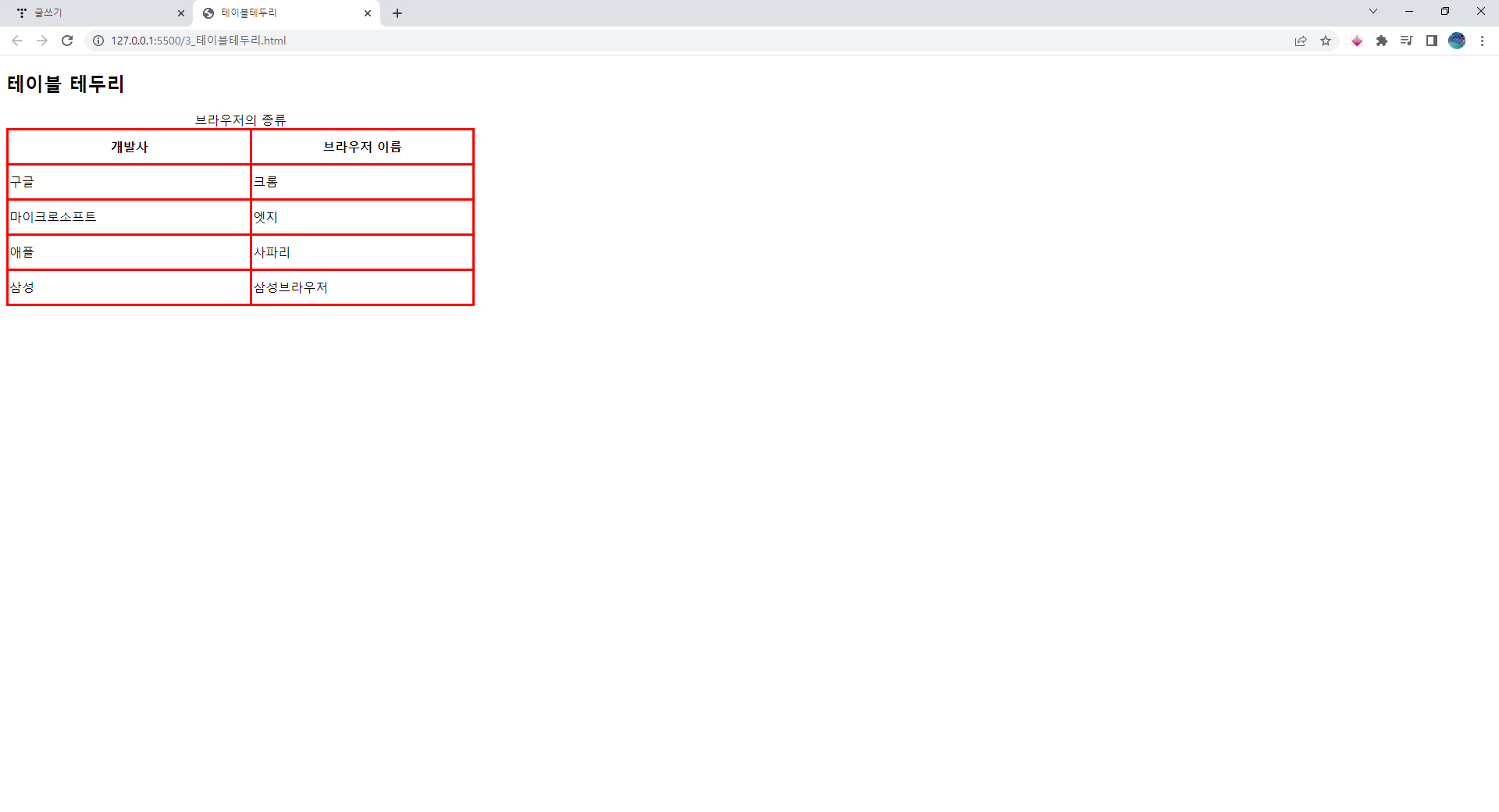 스타일로 테이블 속성을 추가하고 테이블 색상을 빨간색으로 적용했습니다.