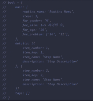 백엔드에서 요청했던 데이터 구조에 맞게 객체로 묶어서 전송했다.