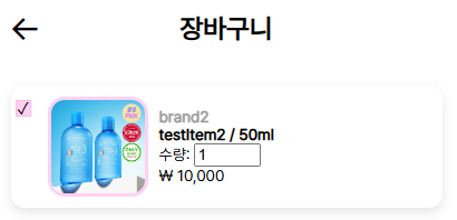 가능하면 하단의 전체 제품 체크를 연결하려고 했는데, 이 부분에서 기존에 작성된 로직을 변경했어야 했어서 무수한 에러때문에 제품 전체 체크를 없앴다. 장바구니의 경우 보통 안 살 물건을 체크 해제하지 살 물건을 전체 체크하진 않아서 괜찮을 것 같았다.