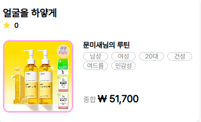 그리고 UI 변경 요청에 따라 전체 루틴에 리뷰 데이터를 가져오기 애매해서 리뷰 개수 부분을 제거하고 루틴 상세 페이지에서 피부타입 일치 부분을 숨겼다. 그리고 루틴의 좋아요 버튼도 기능을 없앴기 때문에 안보이게 숨겨줬다.