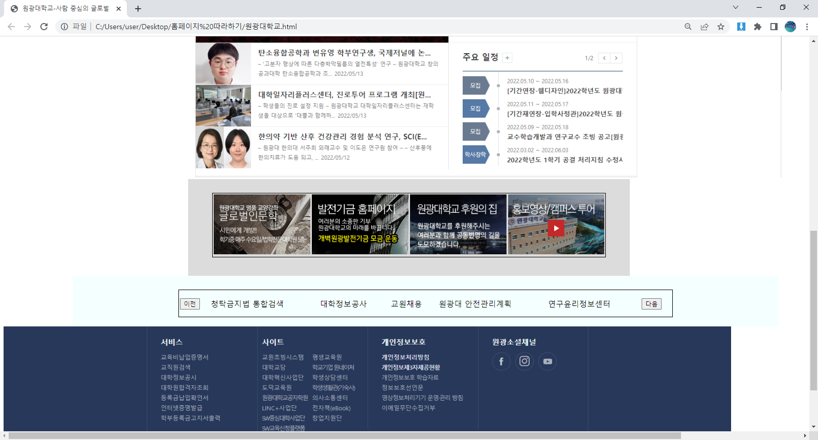 하단도 전부 이미지이고 중간에 작성할수 있는부분만 만들어 아무것도 클릭할수가없는 보기에만 비슷한 홈페이지를 만들었습니다