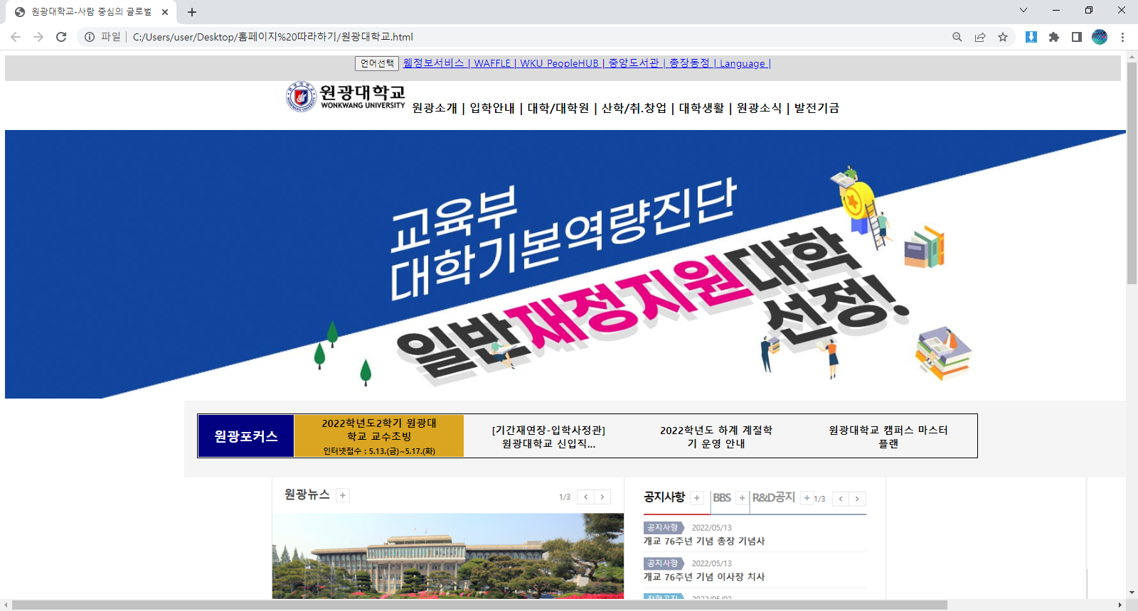 모티브 홈페이지는 원광대학교 홈페이지입니다