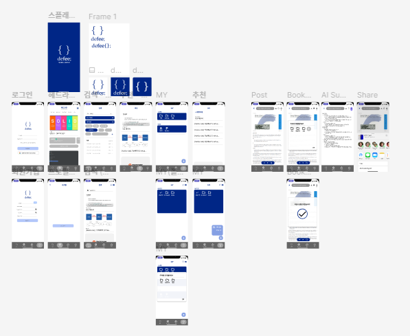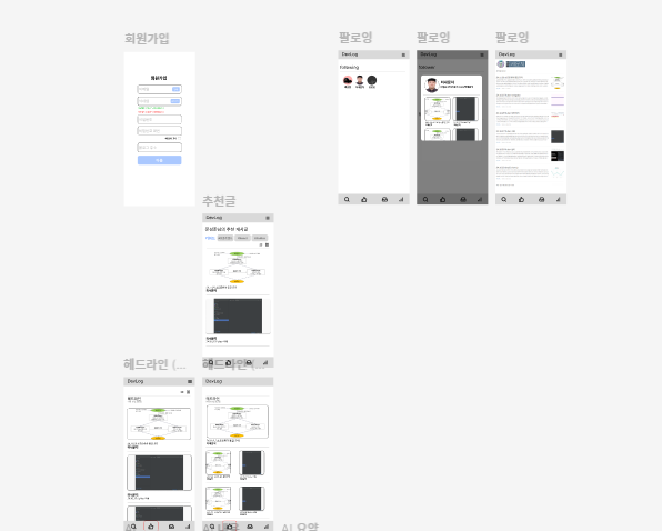 팀원인 시현이가 피그잼으로 맛깔나게 짜준 유저 플로우이다. 회의를 하며 인우랑 본인이 화면 구조를 짜는동안 플로우를 작성해줬는데, 되게 깔끔해서 좋았다.
