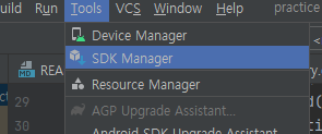 에뮬레이터를 설치하려면 Android Studio에서 Tools에 SDK Manager를 들어가서 세팅해줘야 한다.