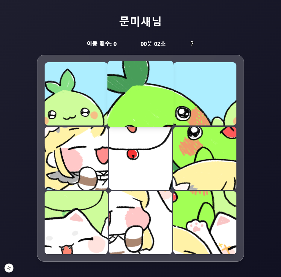 현재 퍼즐 이미지는 3개를 넣어놨는데, 화질과 가독성이 떨어지는 부분이 있어 나중에 깔끔한 퍼즐로 변경할 예정이다.