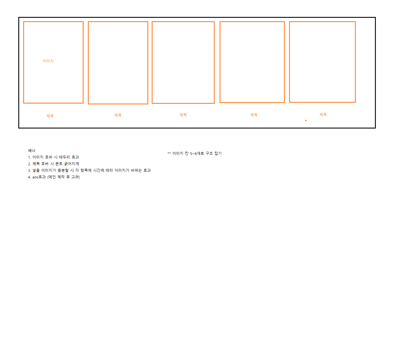 배너는 간단하게 여러 이미지를 넣고 밑에 제목과 배너를 마우스오버했을 시 테두리를 주어 선택한 것이 잘 보이게 만들려고 했으나 살짝 변경되었습니다
