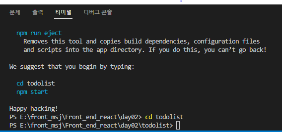 이제 todolist폴더가 생성되었으니 폴더로 들어가야합니다