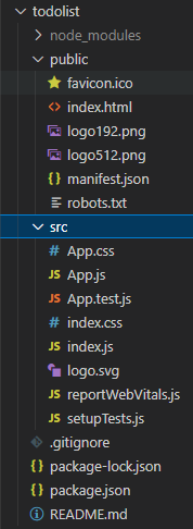 먼저 public 폴더 안에서는 favicon.ico와 index.html을 제외한 나머지 4개의 파일을 삭제해줍니다