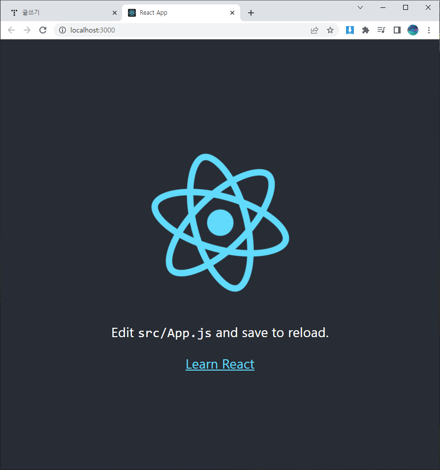 실행을 하여 완료되면 새 브라우저창이 열리면서 원자모양으로 된 아이콘이 보입니다