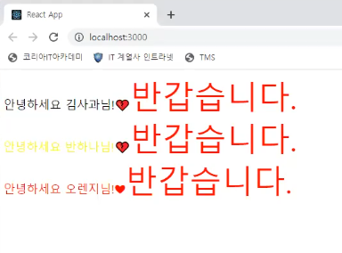 결과값은 상단의 props와 똑같이 출력되는걸 볼 수 있습니다